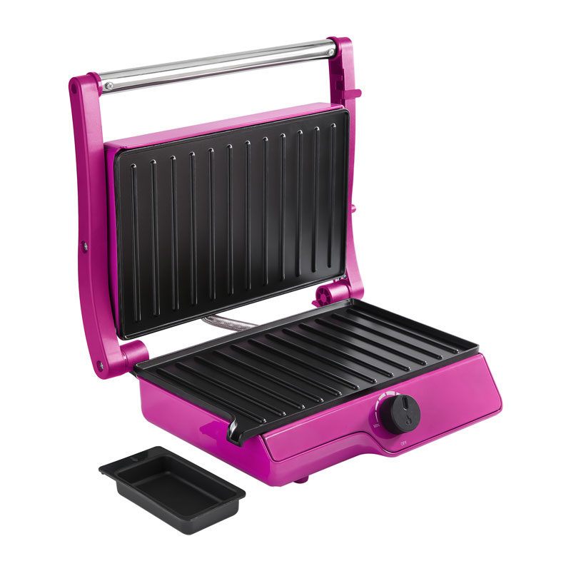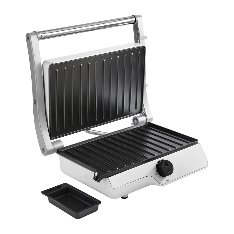 | Principales fonctionnalités | Poignée sûre au toucher froid, plaque de revêtement antiadhésive, système de charnière flottante, mode gril ouvert à 180°, conception goutte à goutte d'huile, voyants de mise sous tension et de prêt |