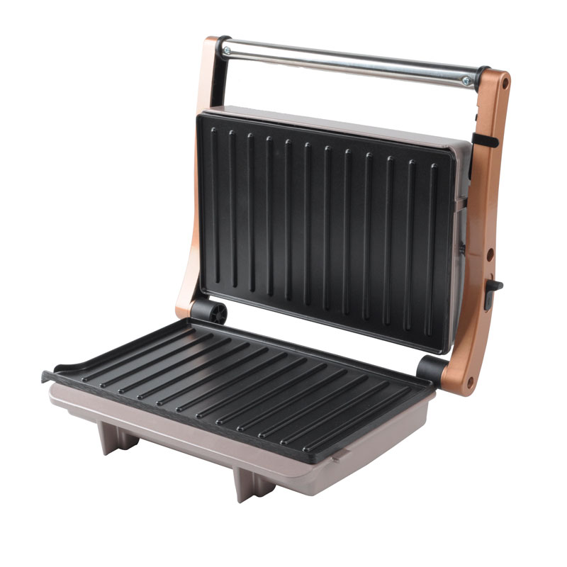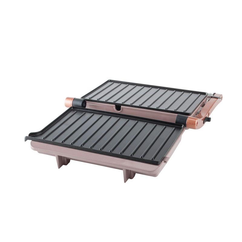 | Caractéristiques fonctionnelles de base | Plaque de revêtement antiadhésive de qualité alimentaire, charnière flottante adaptative, gril entièrement ouvert à 180°, poignée anti-brûlure froide au toucher, collecte des gouttes d'huile intégrée, voyants de mise sous tension et de préchauffage |