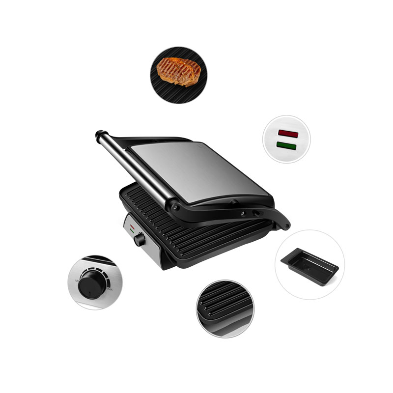 | Caractéristiques | Poignée sûre au toucher froid ; Bac de récupération pour récupérer l'excès d'huile ; Bouton de contrôle de température réglable ; Revêtement antiadhésif pour un nettoyage facile ; Le système de charnières flottantes s'ajuste automatiquement à n'importe quelle taille de pain grillé, de viande ou de collation. Peut s'ouvrir à 180° comme un gril ouvert. Lumières allumées et prêtes. Pieds antidérapants. |